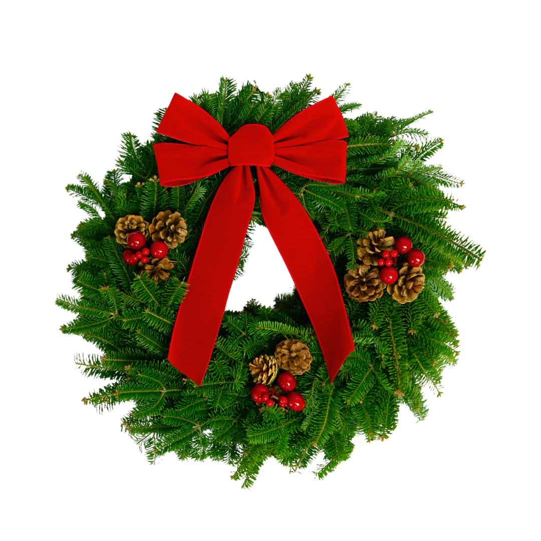 The legendary Whitney Original, our flagship wreath, is a favorite for the holidays. This wreath offers a classic combination of festive touches and traditional style. Crafted on a base of fresh Maine Balsam, this 24" double sided wreath is meticulously finished with red berries, Austrian pine cones, and a weatherproof red velvet bow.